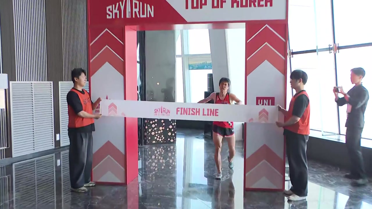 서울 송파구에 있는 국내 최고층 빌딩 롯데월드타워에서 오늘(19일) 오전 123층, 총 2,917개의 계단을 오르는 수직 마라톤 대회가 열렸습니다.
