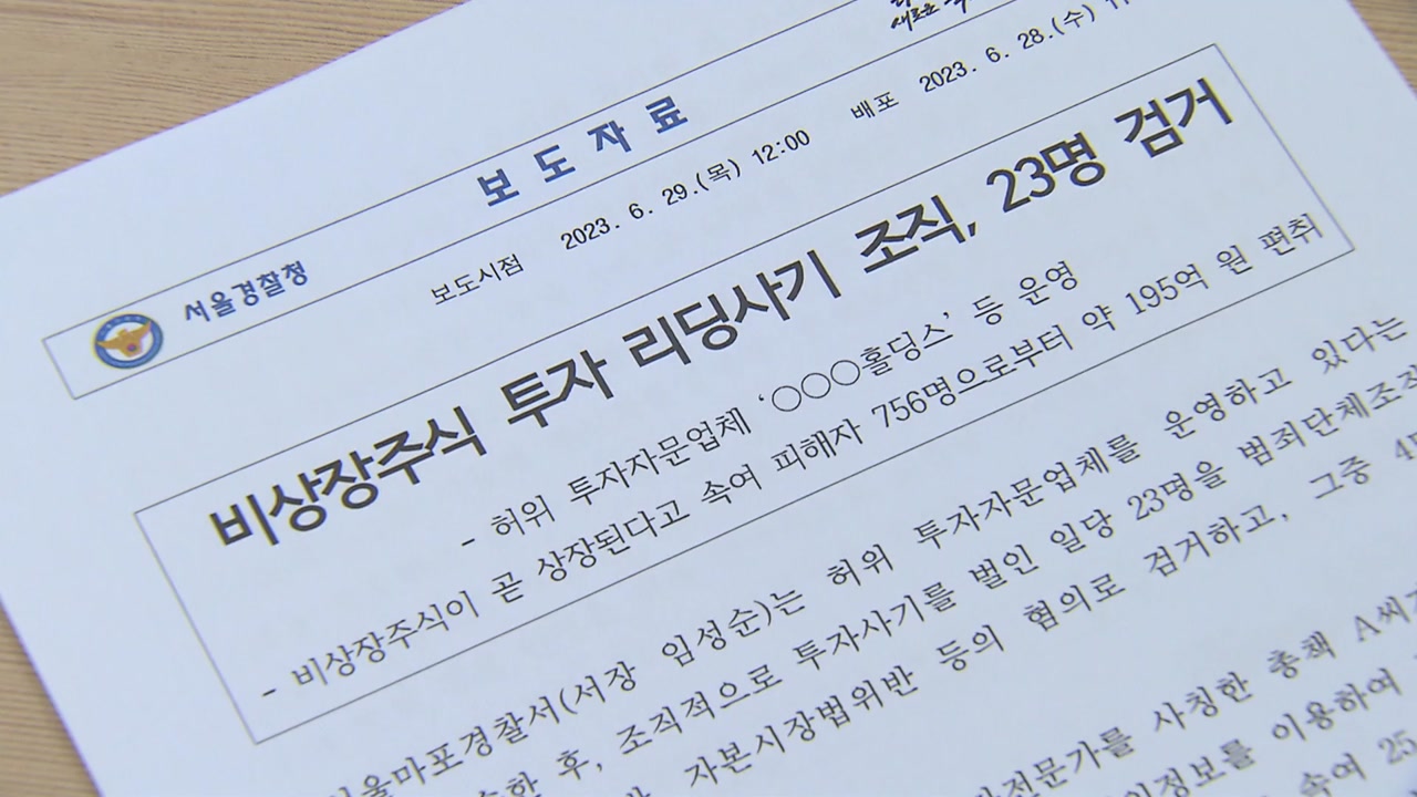 비상장주식이 상장되면 최대 6배의 수익을 보장한다며 투자자들을 속여 100억 원이 넘는 돈을 가로챈 일당이 경찰에 붙잡혔습니다.
