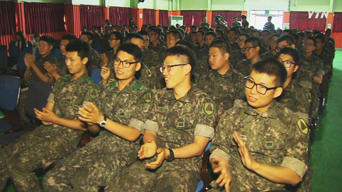 육군수도방위사령부 예하 제1113 공병단은 안산대학 멀티미디어디자인과 학생들을 부대로 초청해 응원 티셔츠 패션쇼를 열었습니다.