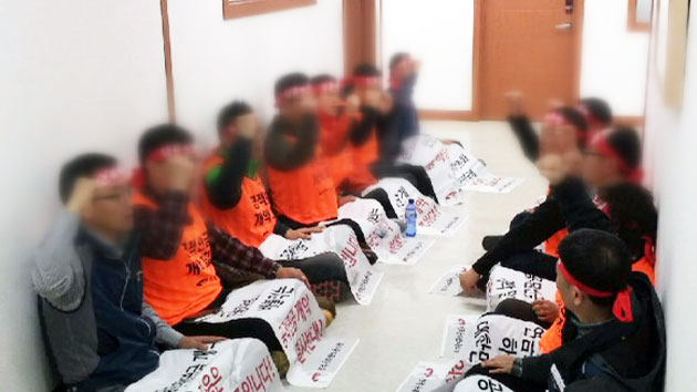 노조원들은 현재 당 조직국 앞 복도에서 연좌농성을 벌이고 있습니다.