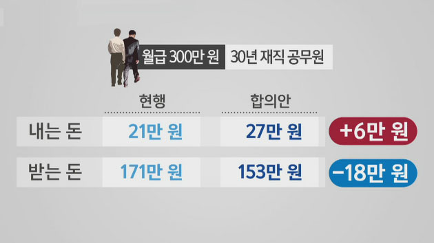 그러니까 그런 것들은 너무 낭비적인 거니까 없애야 된다라든지. 또는 그동안에 33년 이상 재직을 한 분들이 국가는 7%를 내는데 공무원들은 안 냈어요. 그 보험료를. 우리가 경제활동을 하는 동안은 내야지 하는 게 일반적인 상식인데. 아무래도 상한선을 둬야겠죠. 그래서 그런 것들을 좀더 합리적으로 제도도 개선하면 그게 재정효과가 굉장히 있다. 그런 부분들도 같이 논의가 됐었으면 참 좋았을 텐데 너무 더 받고 덜 주는 것만 얘기를 해서 이번 개혁에 아쉬움이 남는 거라고 봅니다.
