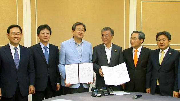 조금 전인 오후 6시쯤에 새누리당 김무성 대표, 그리고 새정치연합 문재인 대표가 만나 공무원연금개혁안에 대해 최종 합의를 이끌어 냈습니다.