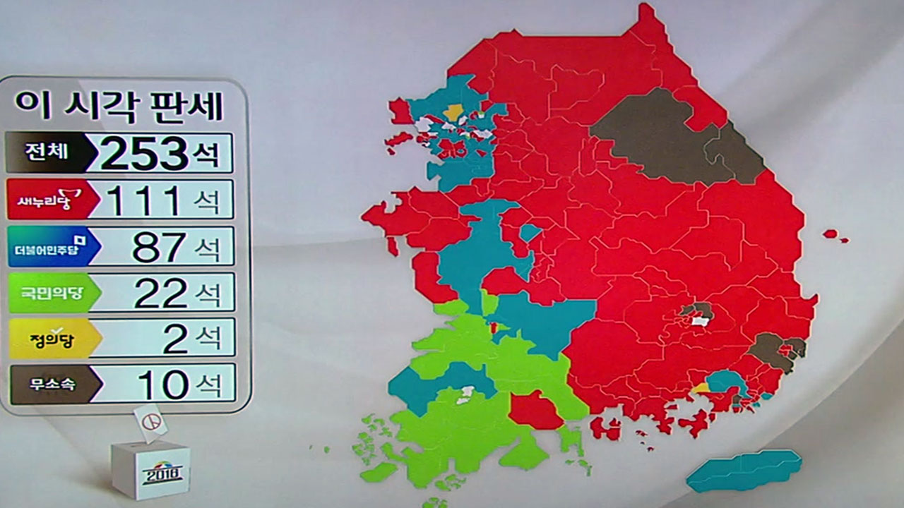 먼저 새누리당은 현재 111석을 차지한 것으로 나타나고 있고 더불어민주당에서는 87석을 차지한 것으로 나타나고 있습니다. 국민의당은 22석, 정의당은 2석, 무소속이 10석을 차지한 것으로 나타나고 있습니다.