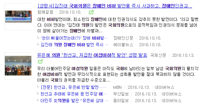 물론 보수성향 정치인이나 새누리당 소속 정치인이라고 해서 이 표현으로부터 자유로운 건 아니다. 다만, 표 의원은 과거에도 여성과 약자와 장애인을 포용하고 그들을 위한 정책을 펼쳐야 한다고 말해왔다. 그리고 진보적인 국회의원들을 지지하고 이들의 정책을 환영할 사람들 역시 표창원 의원이 '광역으로 도발한' 이들이다.
