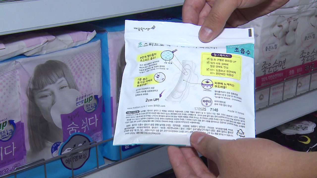 시중에 판매하고 있는 생리대의 겉면에는 주요성분만 기재돼 있습니다.