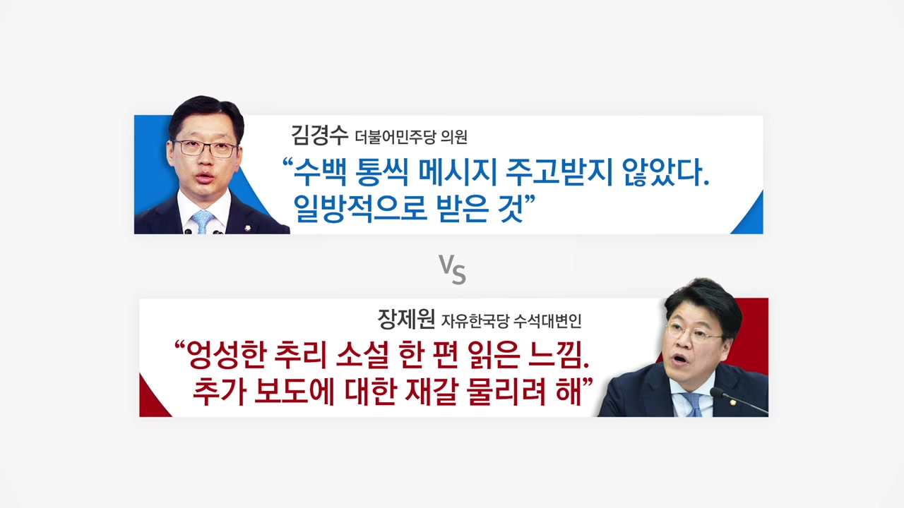 그렇다고 한다면 김경수 의원 입장에서 지금 일부 보도에 의하면 김경수 의원과 댓글을 조작했던 사람들과 지금 수백 통의 문자를 주고받았다고 그러는데 김경수 의원은 그 정도까지는 아니라고 이야기는 합니다마는 일단 김경수 의원이 스스로 이 의혹을 풀기 위해서는 범인들과 오간 문자 내용을 스스로 명명백백하게 밝히는 게 필요하지 않을까 하는 생각이고요.