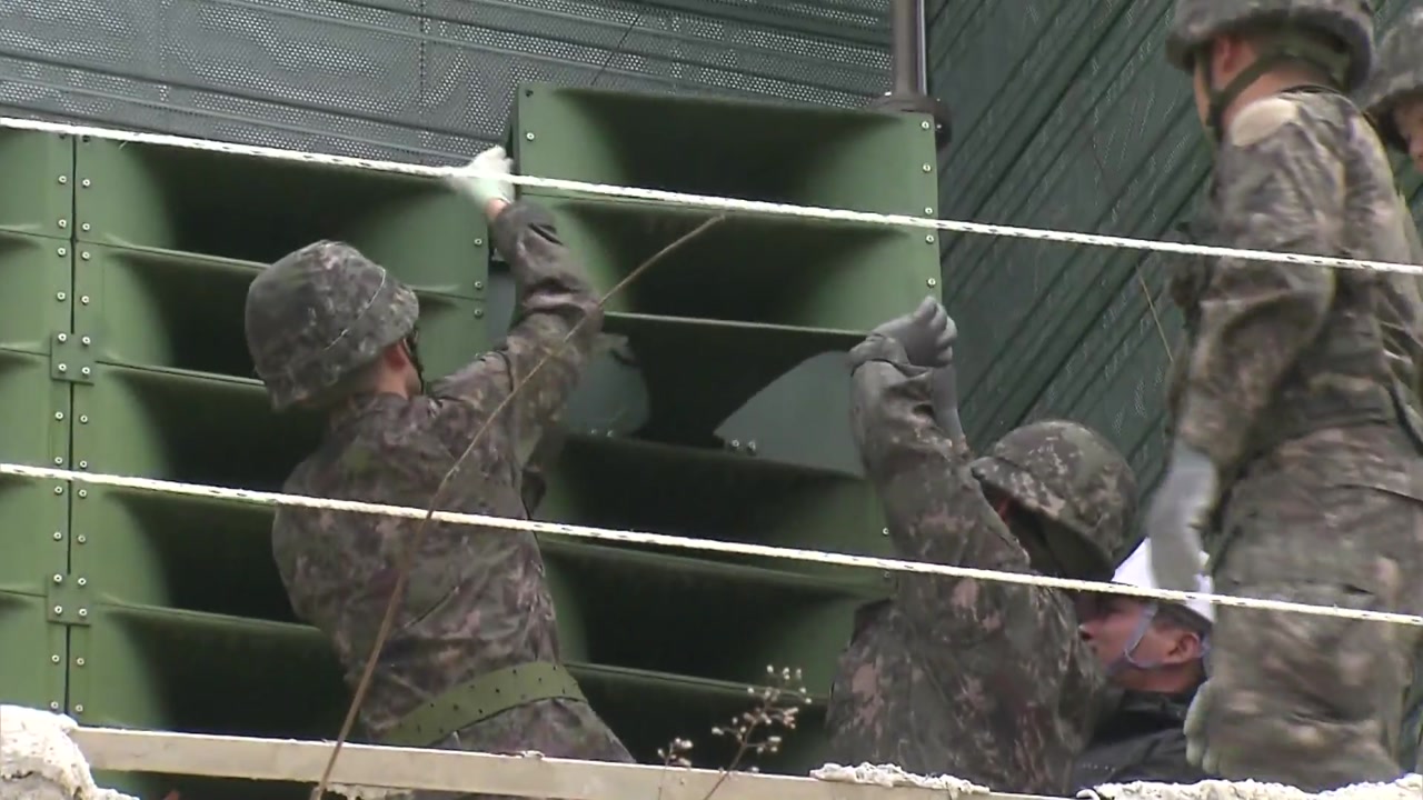 북측 전방에서 운용되는 대남 확성기 40여 대 가운데 일부를 철거하는 움직임을 보인 겁니다.