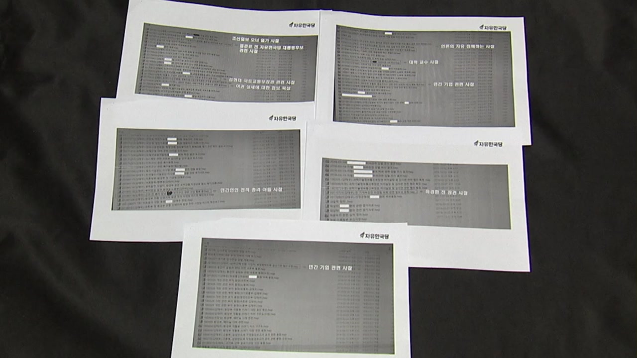 지금 말씀하신 대로 어제 나경원 원내대표가 한국당 의총에서 공개한 문건 목록을 보면 야권 정치인과 기업인 또 언론인, 교수 등이 다 망라돼서 포함돼 있는데 이 내용 먼저 들어보시겠습니다.