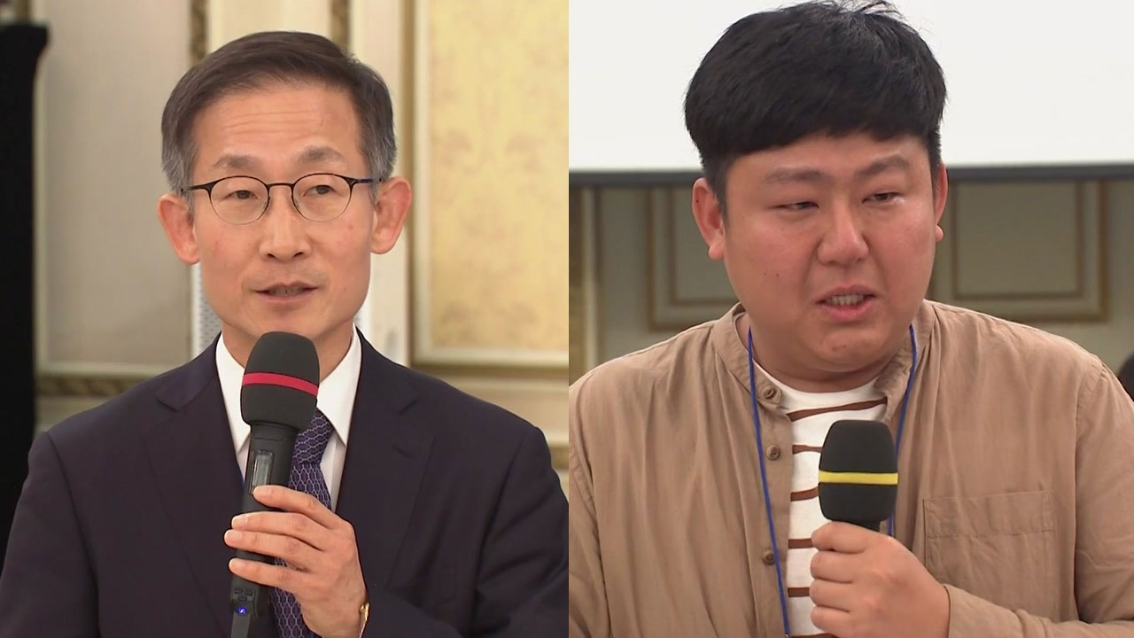 [엄창환 / 국청년정책네트워크 대표 : 정권이 바뀌었습니다. 청년들은 수많은 기대를 하였습니다. 하지만 결과적으로 놓고 봤을 때 아직까지 정부가 청년 문제를 인식하는 방식은 대개 단편적이라서 청년의 삶 전반을 진중하게 해석하는 모습은 찾아보기 힘든 것 같습니다. 청년들이 과소대표 되어서 발생하는 (울먹거림) 문제라고 생각합니다. 이야기가 더 있는데 못하겠어요. 그래서 여기까지 하고요. 이런 것들을 꼭 대통령님께서 직접 챙겨서, 잘 챙겨 주셨으면 좋겠습니다.]