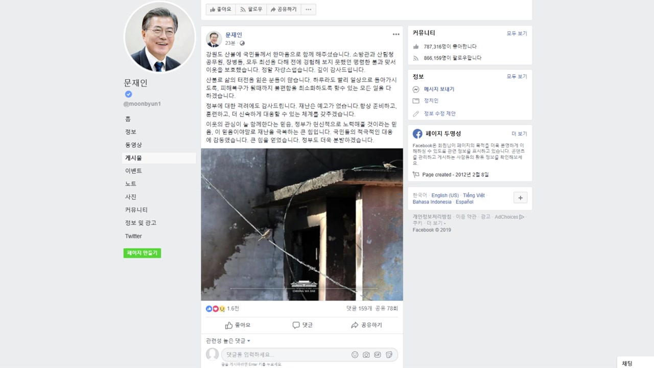 문 대통령은 자신의 SNS에 올린 글에서 소방관과 산림청 공무원, 공무원, 장병들이 모두 맹렬한 불과 맞서 이웃을 보호했다며 깊은 감사를 표했습니다.