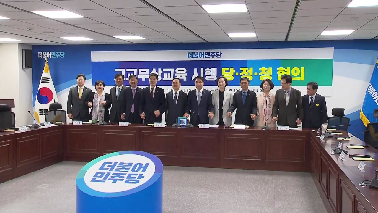 당·정·청은 올해 2학기 고3 학생을 시작으로 내년에는 2~3학년, 오는 2021년에는 고등학생 전원을 대상으로 무상 교육을 확대하기로 했습니다.