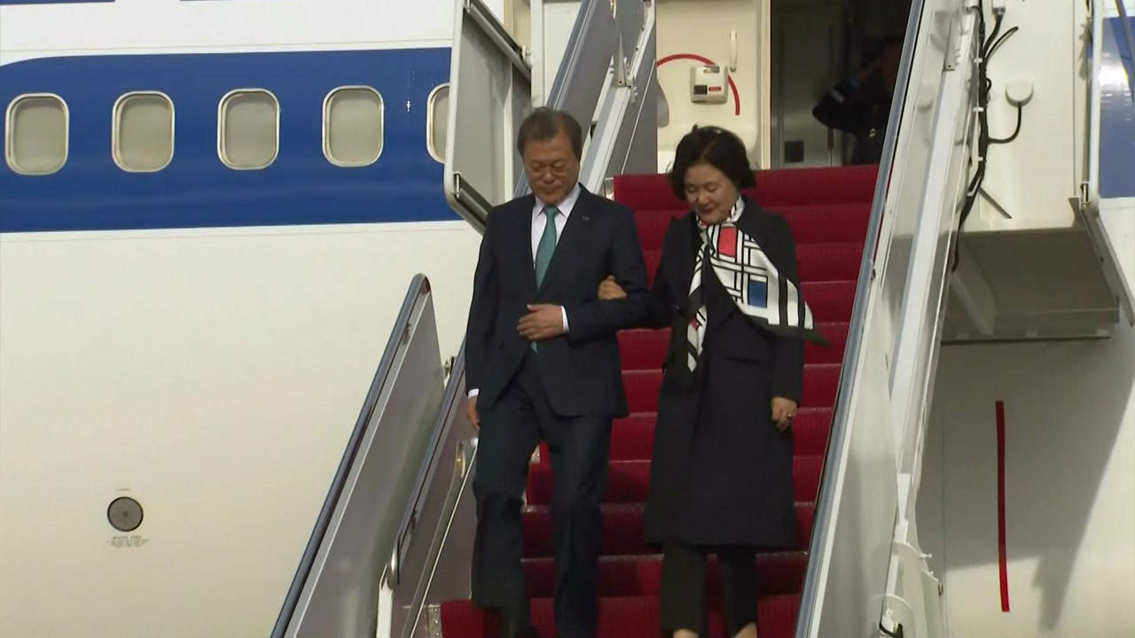 문 대통령과 수행원들을 태운 전용기는 한국 시각으로는 아침 6시 40분쯤 도착했습니다.
