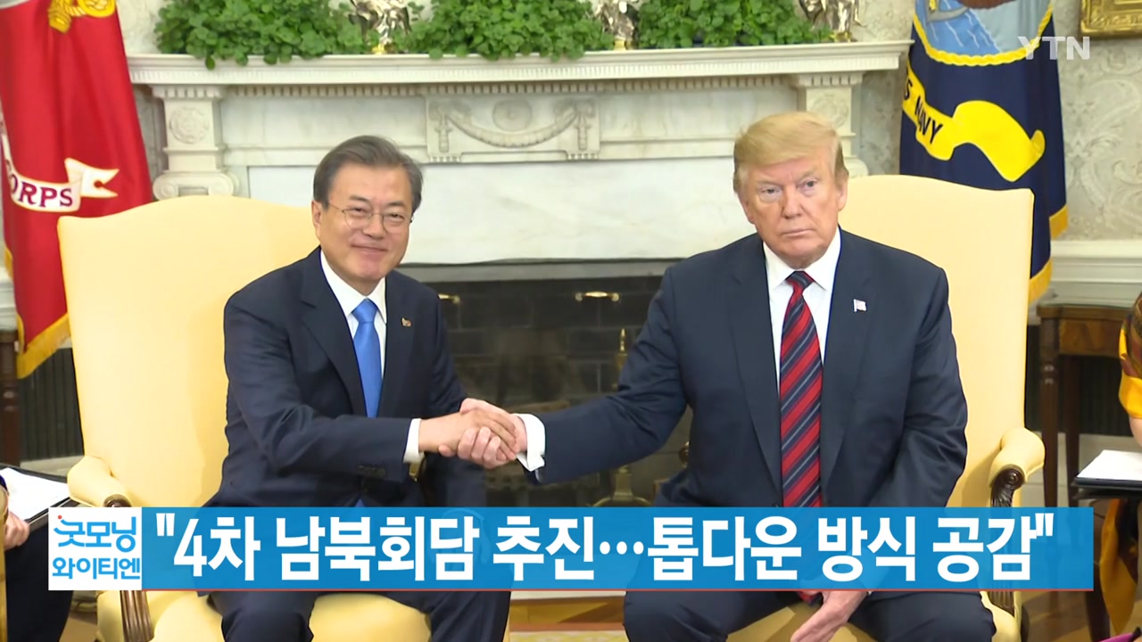 ■ 문재인 대통령이 오늘 새벽 한미 정상회담에서 북미 대화를 촉진하기 위한 4차 남북정상회담을 추진하겠다고 밝혔습니다. 양국 정상은 톱다운 방식의 대화가 한반도 평화 프로세스에 필수라는데 인식을 같이 했습니다.