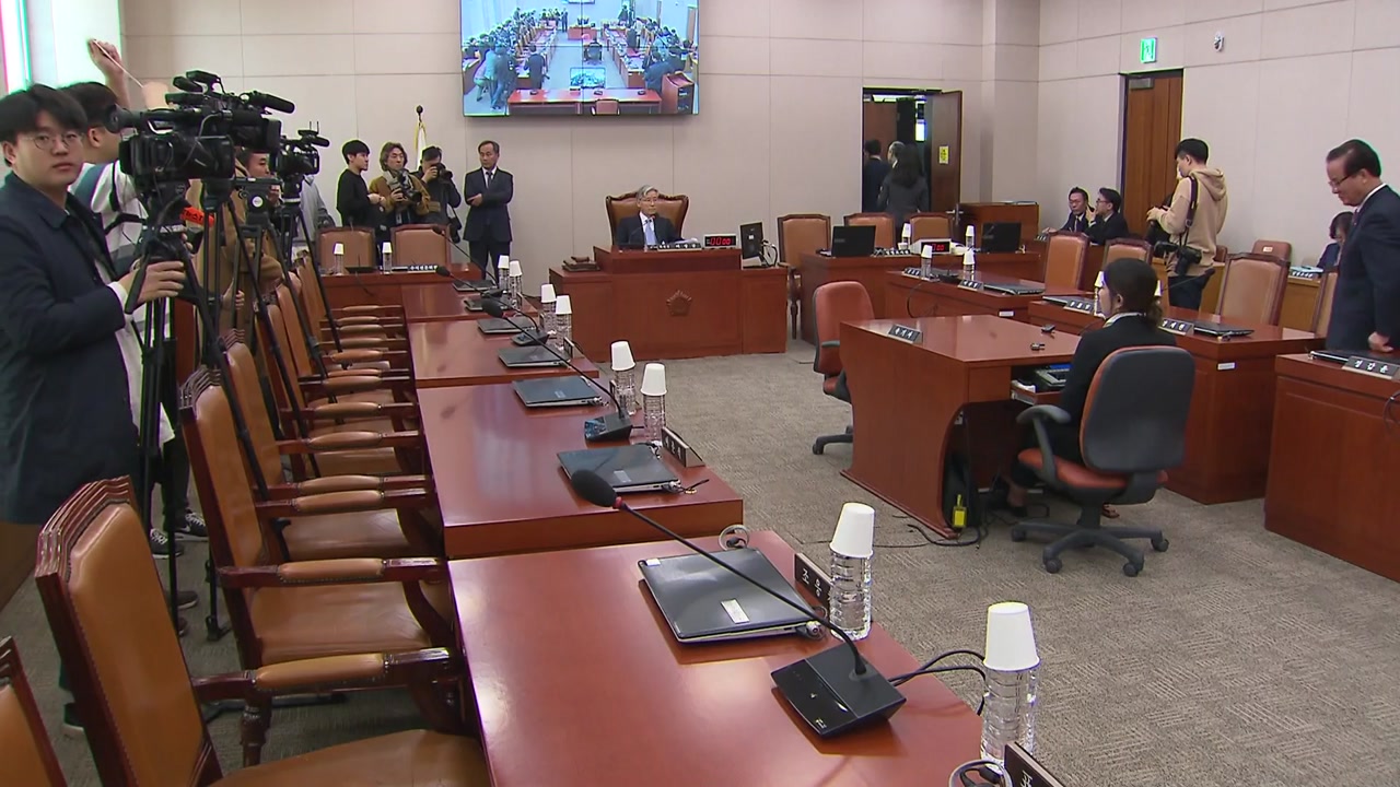 전체 회의를 앞둔 국회 법제사법위원회 회의장 곳곳이 비어 있습니다.