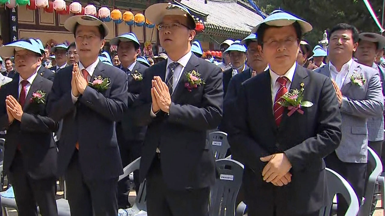 황 대표는 아기 부처를 목욕시키는 이른바 관불 의식도 거부한 것으로 알려졌는데, 당 대표 자격으로 참석한 행사에서 불교식 예법을 지키지 않은 것은 결례라는 지적이 나옵니다.
