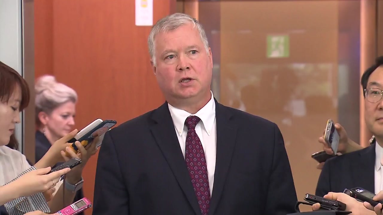 한 시간 남짓 진행된 한미 북핵 협의 후 취재진 앞에 선 스티븐 비건 미 국무부 대북 특별대표.