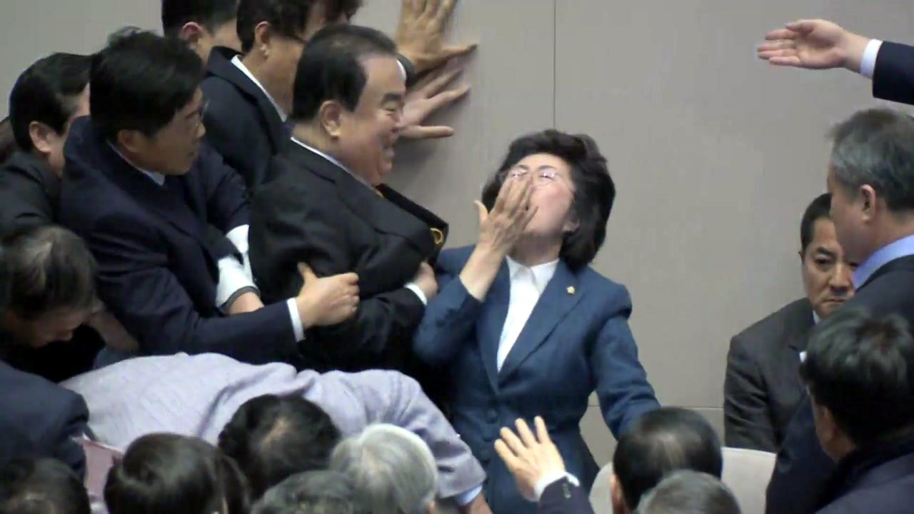 선거법 개정안 표결 과정에서 회의 진행을 물리력으로 막는 이른바 '동물 국회'가 재현돼 눈살을 찌푸리게 했습니다.