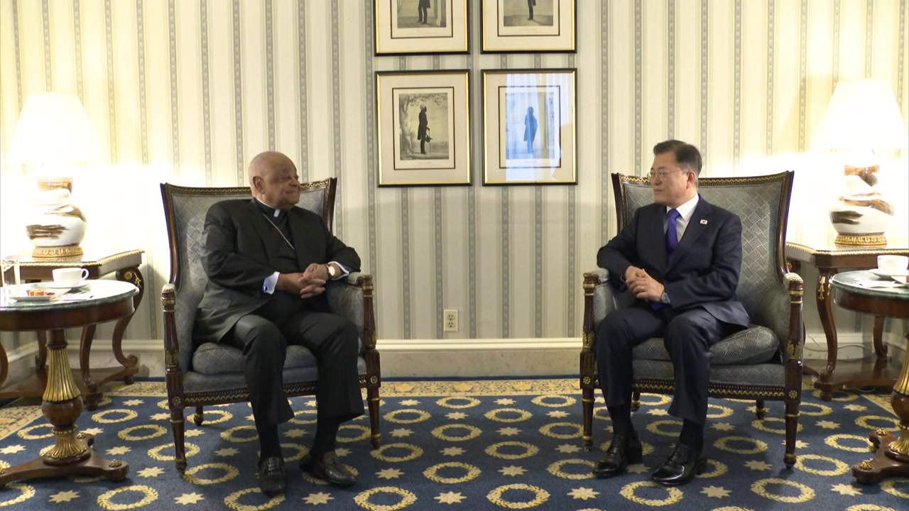 문재인 대통령이 미국 최초의 흑인 추기경인 윌턴 그레고리 워싱턴 DC 대주교와 만나 최근 잇따르는 혐오 범죄에 대해 의견을 교환했습니다.