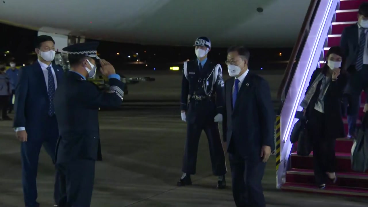 현지시각 22일 오후, 미국 애틀랜타에서 SK이노베이션 공장 방문을 마치고 귀국길에 오른 문 대통령은 어젯밤 11시쯤 서울공항에 도착했습니다.