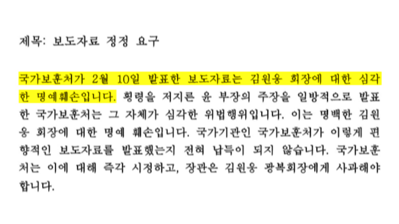 김 회장은 YTN에 보내온 입장문을 통해 횡령을 저지른 직원의 주장을 일방적으로 발표한 보훈처가 심각한 위법 행위를 저질렀다며 보훈처에 즉각 시정과 사과를 요구하면서 사퇴 의사가 없음을 내비쳤습니다.