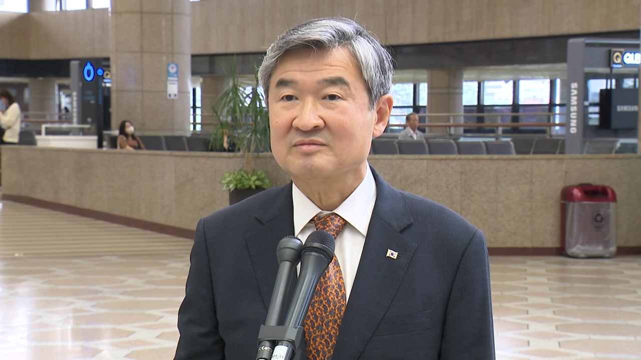공항에서 이뤄진 취재진 인터뷰에서 한미일 회의보다 싱하이밍 주한 중국대사와 관련한 질문이 쏟아졌습니다.