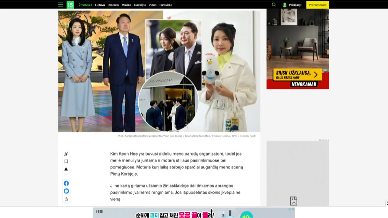 '한국의 퍼스트레이디는 50세의 스타일 아이콘'이라는 제목으로, 김건희 여사가 리투아니아의 수도 빌뉴스에서 5곳의 유명 상점을 방문했다는 내용을 사진과 함께 전했습니다.