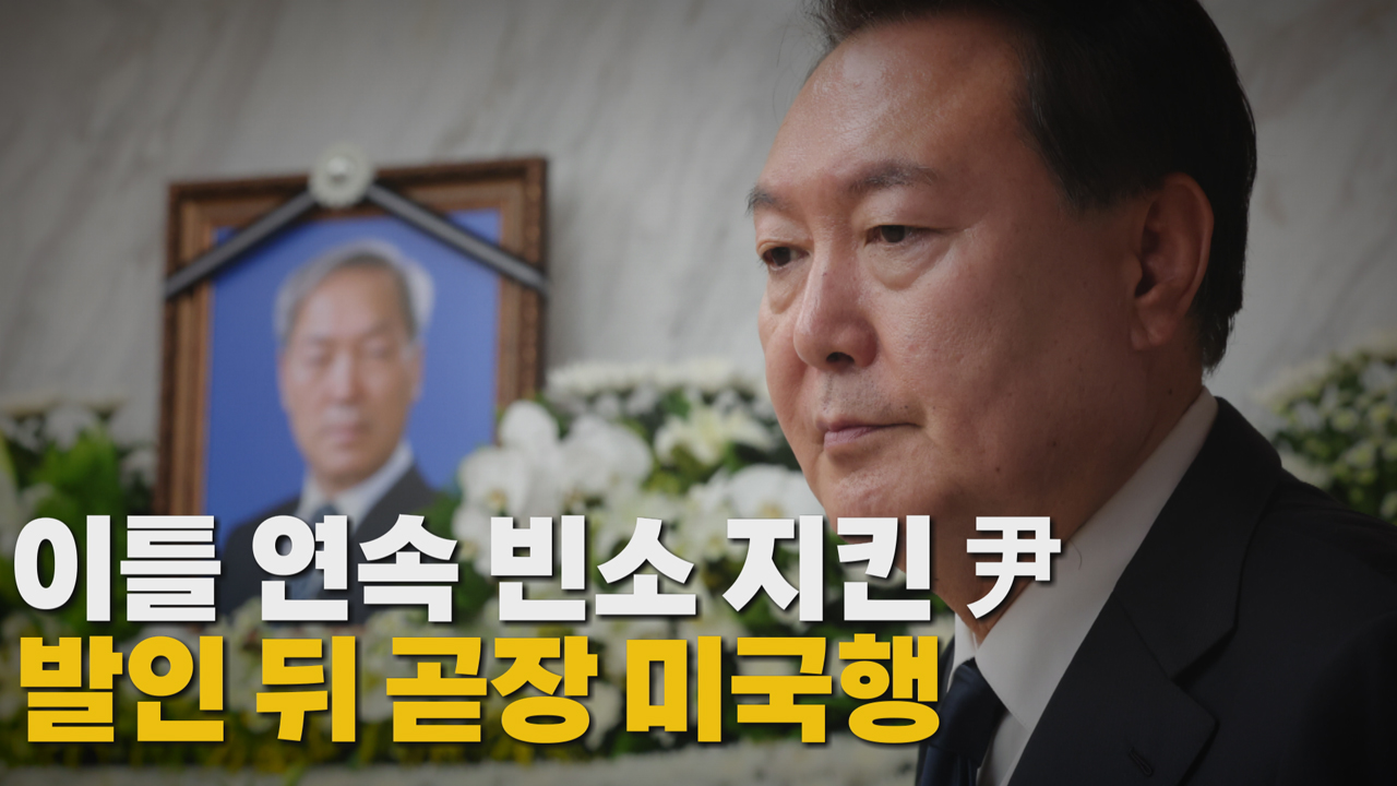 이런 기대도 있는 것 같아요. 지금 여기서 정치적인 대화는 할 수 없지만 영수회담이라든지 우리 한번 만나서 얘기해야 하지 않겠습니까? 이런 식으로 풀어질 수 있는 기회를 마련하지는 않았을까라는 기대 때문일 것인데 이거 알 수 있는 방법은 없습니다. 알겠습니다. 이제는 사흘 가족장이 지나고 내일 오전에 발인을 한 다음에 미국 출국길에 오를 예정입니다. 시선을 옮겨볼 텐데 한미일 정상회의가 코앞에 다가온 만큼 아무래도 이런 상황들도 다 감안해서 운영이 되는 일정인 것으로 보여요.