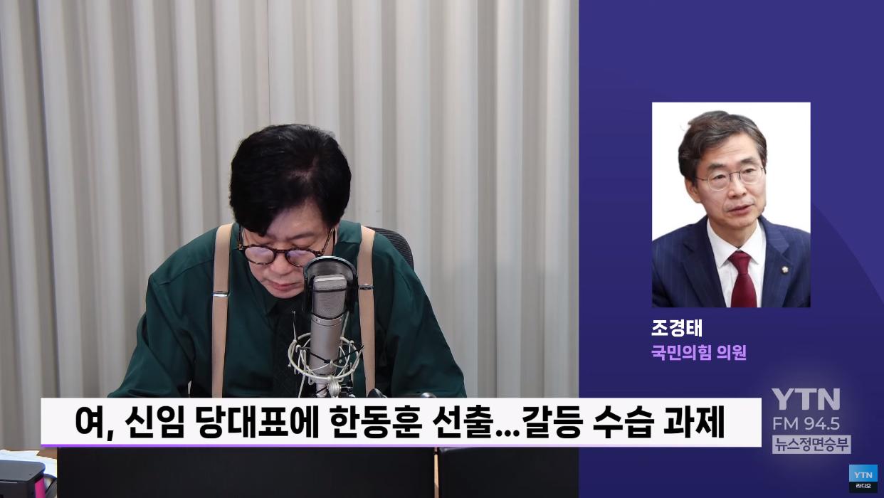 ◆ 조경태: 아마 나경원 후보께서도 정치를 오래 하셨으니까. 저는 이번에 당심과 민심을 또 확인을 하셨으니까. 선거 기간 중에 있었던 그런 여러 가지 약간 부족한 부분들 또 약간 좀 불편한 부분들을 툴툴 털고 저는 한동훈 체제에 걸맞도록 또 여러 가지 역할들을 하실 수 있지 않을까 생각을 하고요. 저 역시도 나경원 후보에게 심심한 위로의 말씀을 전하도록 하겠습니다.