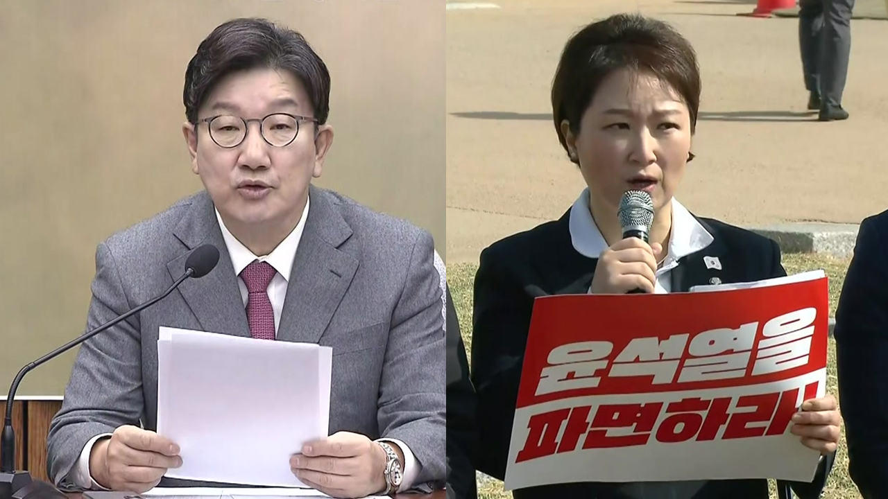 [권성동 / 국민의힘 원내대표 : 대통령과 국무총리 동시 탄핵이라는 초유의 사태로 대미외교 컨트롤 타워 부재를 겪고 있습니다. 한덕수 총리 뺑소니 탄핵을 신속하게 철회해야 할 것입니다.]