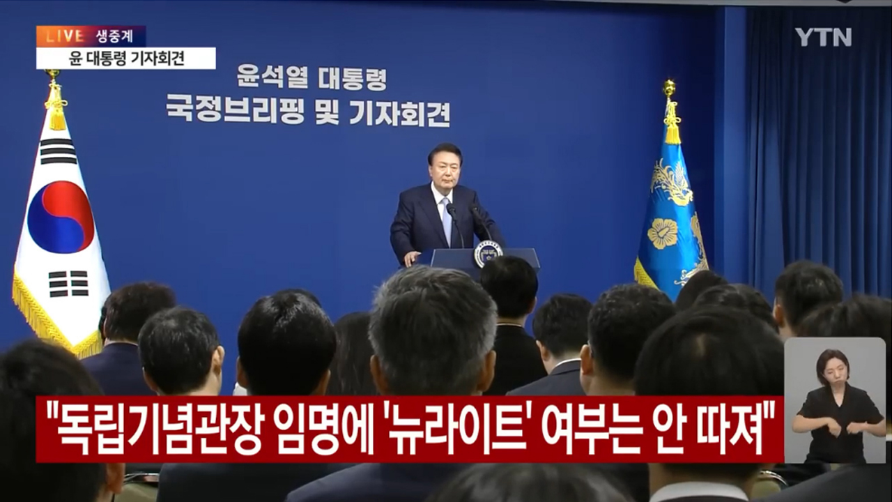 이후 기자회견에서 윤 전 대통령은 "솔직히 뉴라이트가 뭔지 잘 모른다"며, "정부 인사는 뉴라이트 여부를 따지지 않고 국가에 대한 충성과 직책을 맡을 수 있는 역량, 이 두 가지를 보고 한다"고 말했습니다.