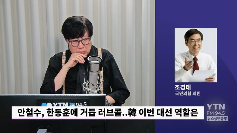 ◇ 조경태 : 지금이라도 지금 그 방송을 듣고 있는 혹시 보수 쪽에 선거 캠프에 있는 책임자 분들이 계신다면은 윤석열 전 대통령과 완전히 절연하는 그런 단호함을 보여주는 것이 이번 대선에 조금이라도 희망을 가질 수 있다는 것을 꼭 명심해 주시기 바랍니다.
