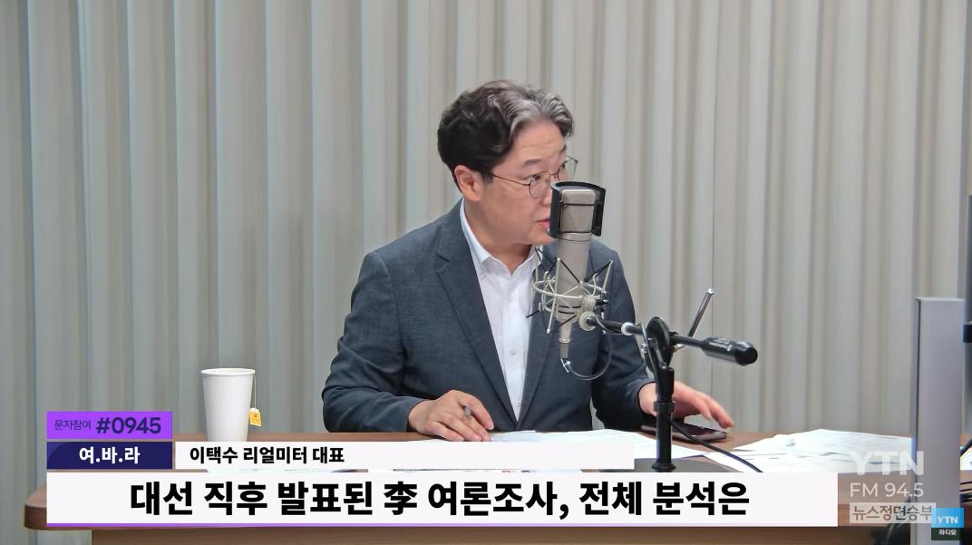 ◇이택수: 전화면접조사보다는 자동 응답 방식이 투표 요약 물어보면 거의 대부분 투표 의향자들이고요. 그래서 미국 같은 경우는 전화 면접 조사의 경우에 투표 의향이 있는지 물어봐서 투표 의향이 있는 분들만 사실 결과를 발표 합니다. 그런데 우리나라는 전체 투표 의향이 없는 분들까지도 포함해서 발표하기 때문에 샤이 표심이 있을 수밖에 없었다는 거고요. 아무튼 이번 선거의 구도가 워낙 국민의힘 김문수 후보한테는 불리했죠. 축구로 치면 기울어진 운동장. 제가 오면서 보니까 쿠웨이트 경기 때문에 여기 굉장히 막히더라고요. 장기로 치면 김문수 후보는 차 떼고 포 떼고 한 경기였고요. 그다음에 바둑으로 치면 몇 점 상대방한테 주고 한 거고요. 골프로 치면 핸디캡 다섯 타 주고 한 거고요. 달리기로 치면 모래주머니 차고 한 거거든요. 결정적으로 단일화가 결국 안 됐고 단일화 하냐 마냐 때문에 당내 분란이 굉장히 컸죠. 그 다음에 이번 선거가 김문수 대 이재명 구도로 막판에 갔지만요, 결국에는 윤석열 대 이재명 후보가 계속 왔었기 때문에 그다음에 마지막으로는 부정 선거하고 사전투표 거부. 이게 끝까지 발목을 잡았어요. 지난 2022년 선거 때는 그래도 윤석열 후보가 사전투표 하자. 그리고 당에서도 적극적으로 사전투표 독려 캠페인을 했는데요. 이번에는 김문수 후보가 초반에는 사전투표 없애겠다 이런 공약을 발표하면서 다소 혼란이 있었습니다. 그러다 보니까 한 표라도 더 긁어모아야 되는데 여러 가지 장애가 있었던 선거였기 때문에 김문수 후보 입장에서 어려웠던 선거였었고 여론조사에서도 잘 안 잡혔죠.