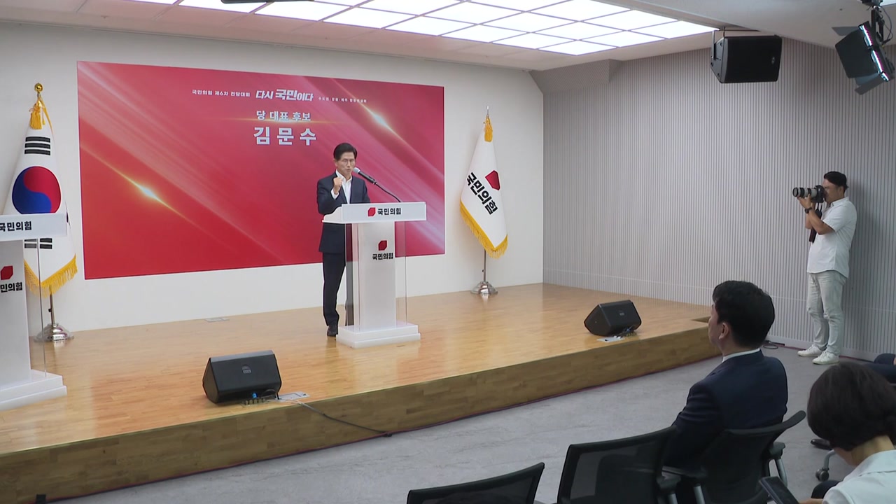 오늘 연설회는 경기 고양시 킨텍스에서 열릴 예정이었지만, 수도권 집중호우 피해와 특검의 당사 압수수색 등으로 현장 일정을 취소하고 여의도 중앙당사에서 온라인으로 진행됐습니다.