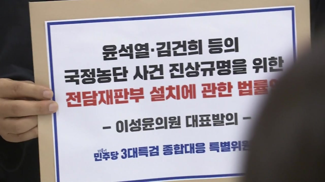 전현희 위원장이 이끄는 민주당 3대 특검 종합대응특별위원회는 오늘(18일) '윤석열·김건희 등의 국정농단 사건 진상규명을 위한 전담재판부 설치법'을 발의했습니다.