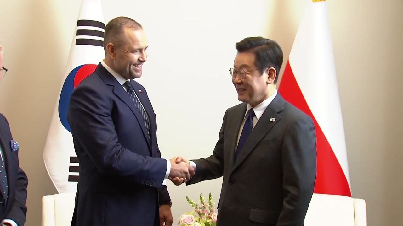 지금 이재명 대통령과 폴란드 대통령이 악수하며 인사하는 장면을 보셨는데요.