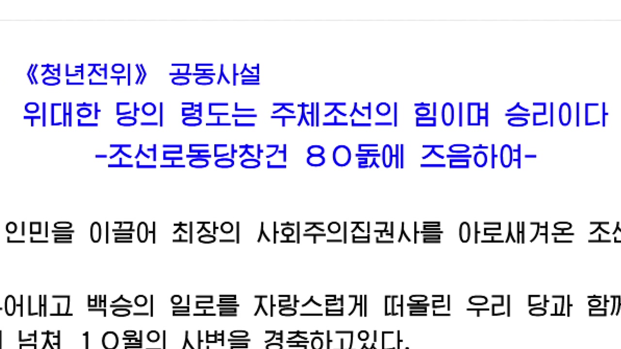 노동당 기관지 '노동신문'을 비롯해 군 신문인 '조선인민군'과 청년 소식지 '청년전위' 등 3개 매체는 공동사설에서 당과 국가를 부강하게 하는 길은 사상과 영도의 유일성을 철저히 보장하는 것이라고 강조했습니다.