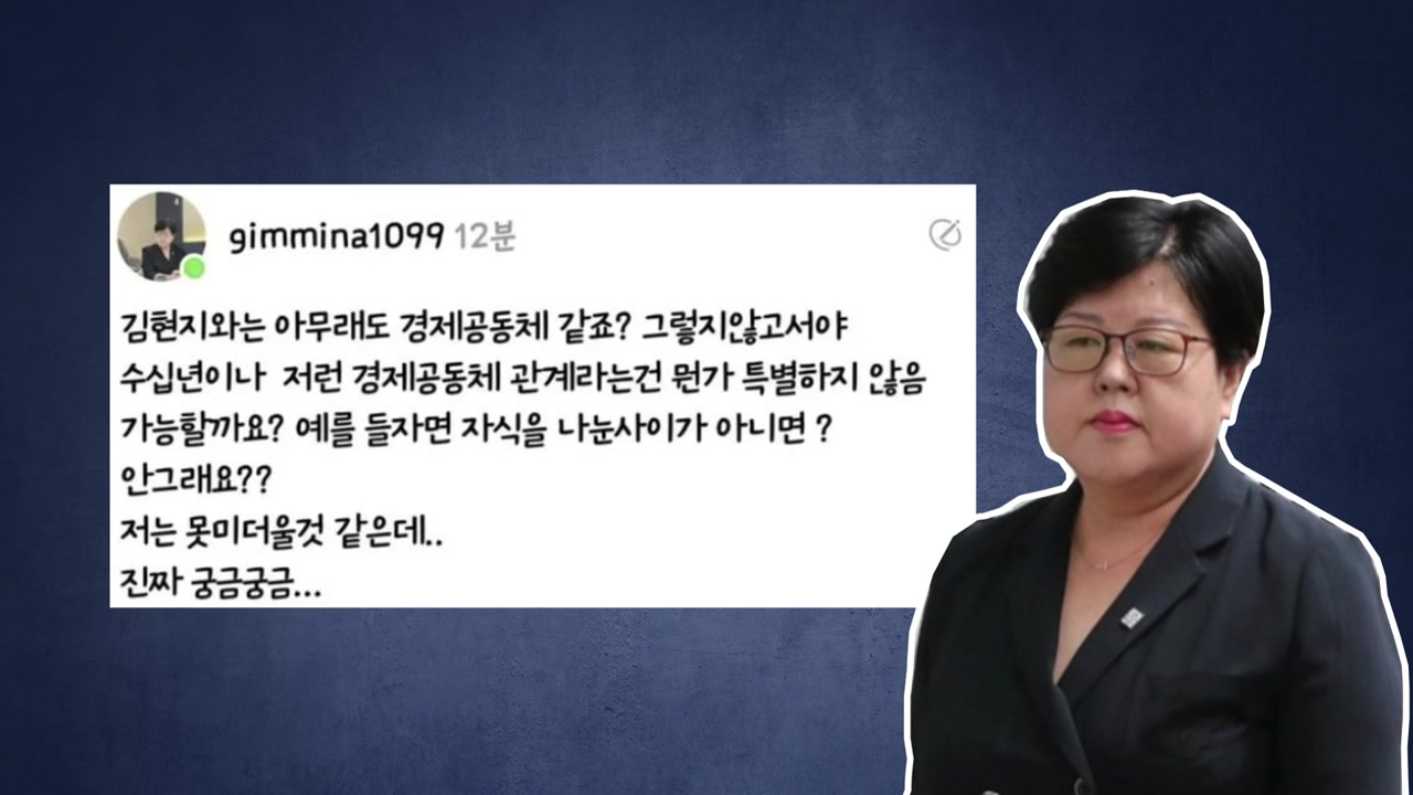 "김현지와는 아무래도 경제공동체 같죠? 그렇지 않고서야 수십 년이나 저런 경제공동체 관계라는 건 뭔가 특별하지 않음 가능할까요"라면서 "예를 들자면 자식을 나눈 사이가 아니면?" 이라고 적었는데요,