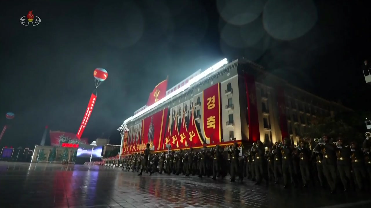 사전행사를 제외하고 본행사 다 합쳐서 1시간 반 정도 진행된 것 같고요. 이게 영상이 편집되어 있어서 순서대로 나오고 있지는 않은데 일단 초반에 보니까 김정은 위원장이 차를 타고 오는 장면까지 보여주더라고요. 그래서 군악대 연주도 하고 예포 발사, 중간중간 나오는 김정은 위원장 연설을 거쳐서 아마 저기에 도열해 있는 장병들이 쫙 열병, 그러니까 행진을 합니다. 행진을 하고 관심을 끌고 있는. 무기체계는 마지막에 나오거든요. 그래서 지금 무기체계가 진열되는 것을 보려면 조금 더 시간이 필요할 것으로. 지금 화면에 언뜻 보이는데 비가 내리는 것 같기도 하네요.