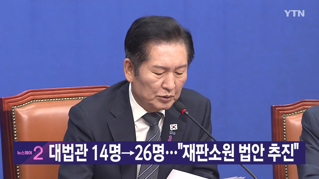 ■ 민주당이 현행 14명이 대법관 수를 26명으로 대폭 늘리는 내용의 사법 개혁안을 곧 발표합니다. 이른바 4심 제도로 불리는 재판소원 제도는 별도의 법안을 추진하기로 했습니다.