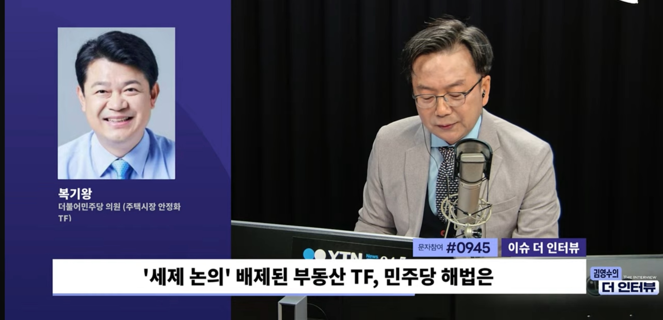 □ 출연자 : 복기왕 더불어민주당 의원 (주택시장 안정화TF)