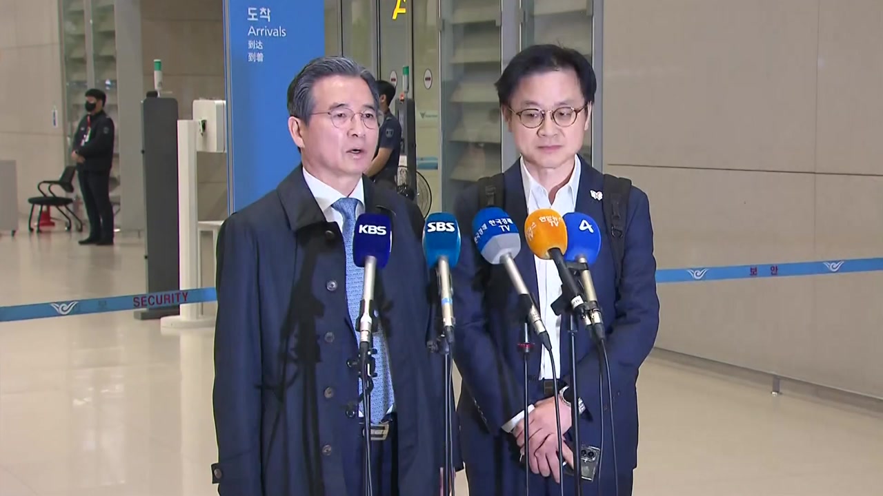 네, 김용범 실장과 김정관 장관 등 정부 협상단이 미국에서 관세 협상 후속 협의를 마치고 이틀 만인 오늘 새벽 인천공항으로 귀국했습니다.