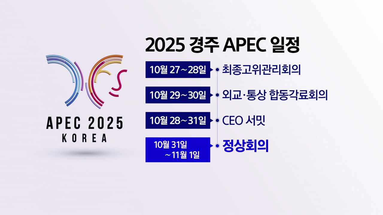 정상회의는 오는 31일 열릴 예정인데, 오늘 최종고위관리회의를 시작으로 경주 APEC은 공식 일정에 돌입했습니다.