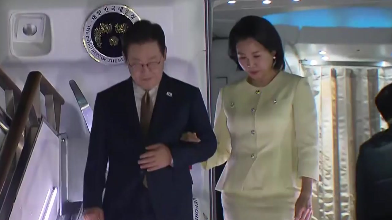 이 대통령과 김혜경 여사, 수행단을 태운 공군 1호기는 어제(27일) 밤 경기도 성남시 서울공항에 도착했습니다.