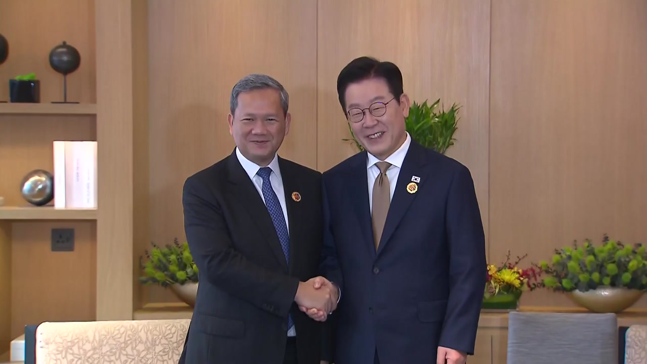 이재명 대통령이 아세안 정상회의를 계기로 말레이시아를 찾은 캄보디아 훈 마네트 총리와 한자리에 마주 앉았습니다.