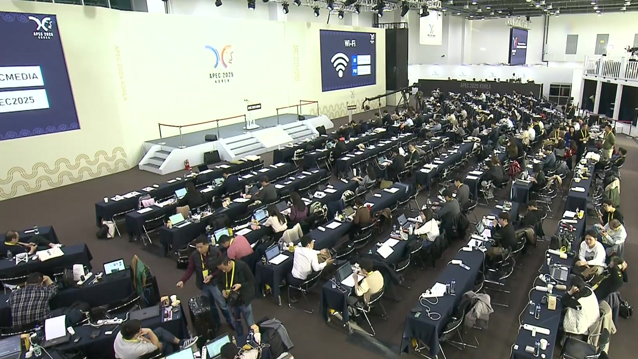 APEC 정상회담이 열리는 경주의 국제미디어센터에 나와 있습니다. 공식주간 이틀째에 돌입하면서 어제보다 한눈에 봐도 취재진이 크게 늘었습니다. 프레스 등록을 마친 언론인만 3천여 명에달할 정도로 전 세계가 주목하는 행사인데주요 일정이 시작되면 더 많은 취재진이 모일 것으로 보입니다. 저희가 있는 미디어센터 전경도 잠시 시청자 여러분들에게 보여드리고 있는데 보안도 더 엄격해졌죠? 네, 저희가 일요일부터 여기서 소식을 전해드렸는데오늘 보안검색대가 등장했습니다. 공항처럼 가방뿐만 아니라 소지품 검사도철저하게 이뤄졌습니다. 정부는 오늘(28일)부터 경주와 영남권 전역에 테러 경보를 3단계인 '경계'로 추가 격상했습니다. 또 경찰은 최고 수준인 갑호 비상체제에 들어갔습니다.