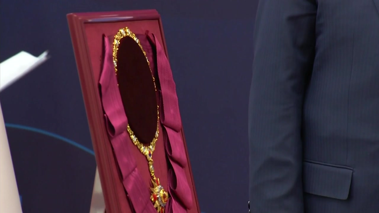 김태진 외교부 의전장은 트럼프 대통령이 보여준 평화 수호의 의지와 강한 리더십, 한미 관계에 대한 헌신에 최고의 존경과 감사의 마음을 표현한다며 취지를 설명했습니다.