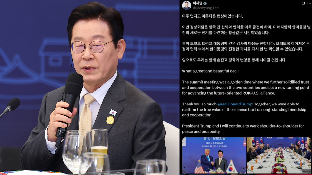 이 대통령은 타결 다음 날인 오늘 SNS에 이같이 적고, 이번 정상회담은 미래지향적 한미동맹 발전의 새로운 전기를 마련하는 황금 같은 시간이었다고 밝혔습니다.