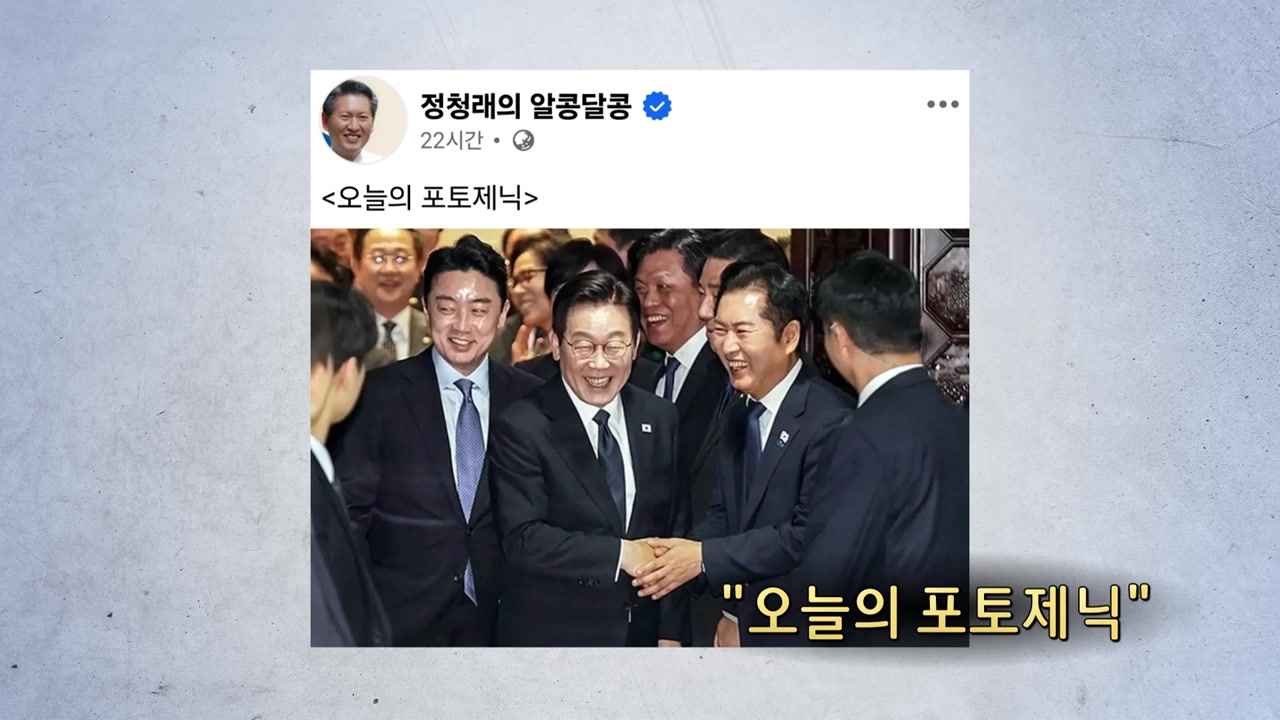 어제 대통령 시정연설이 끝나고 민주당 정청래 대표는 이 사진을 SNS 올렸는데요, 특별한 의미가 있어 보입니다.