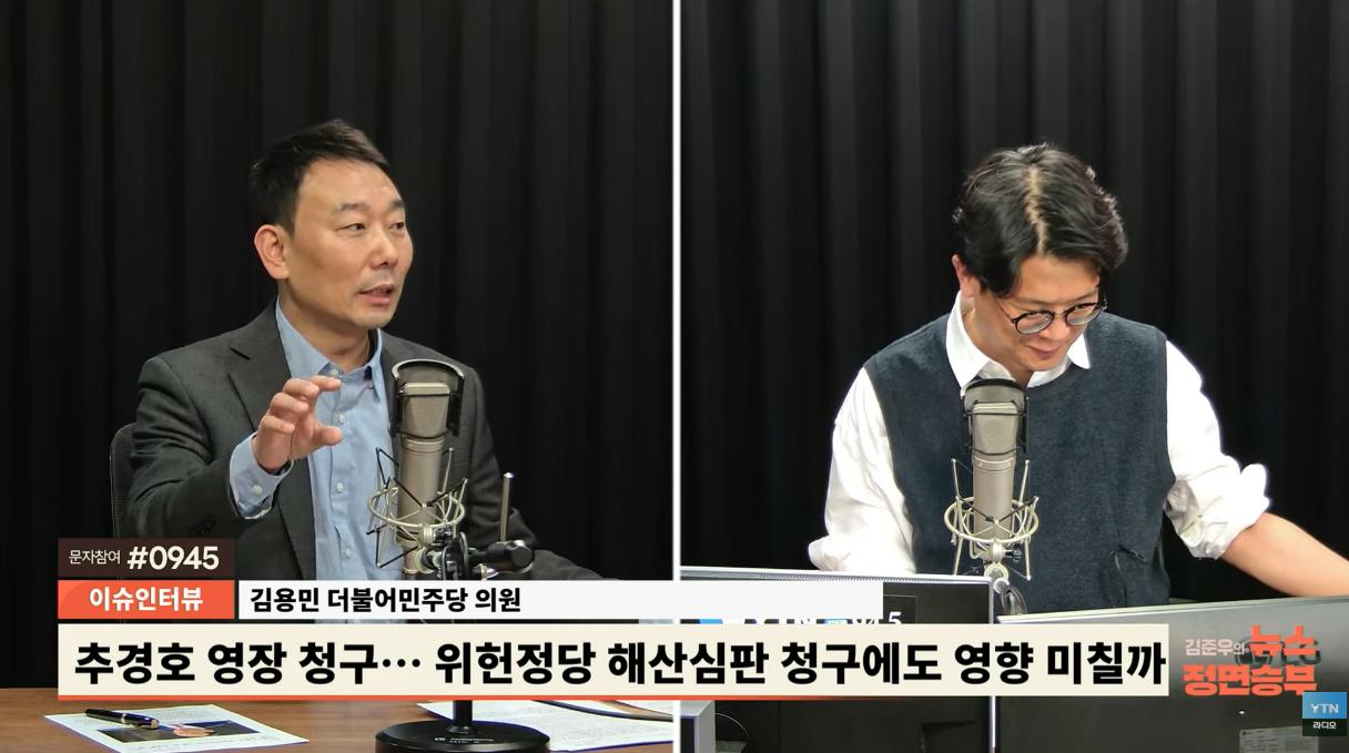 ●김용민: 속도 조절론이라고 표현하면 그럴 수도 있지만, 그 정당해산 사유가 존재하는지에 대한 명확한 판단은.