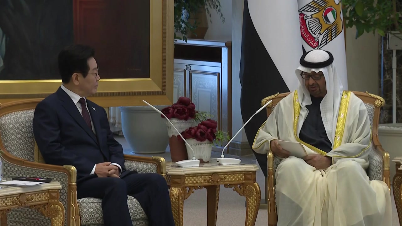 아랍에미리트를 국빈 방문 중인 이재명 대통령이 최고의 예우 속에 무함마드 빈 자이드 알 나흐얀 UAE 대통령과 정상회담을 했습니다.